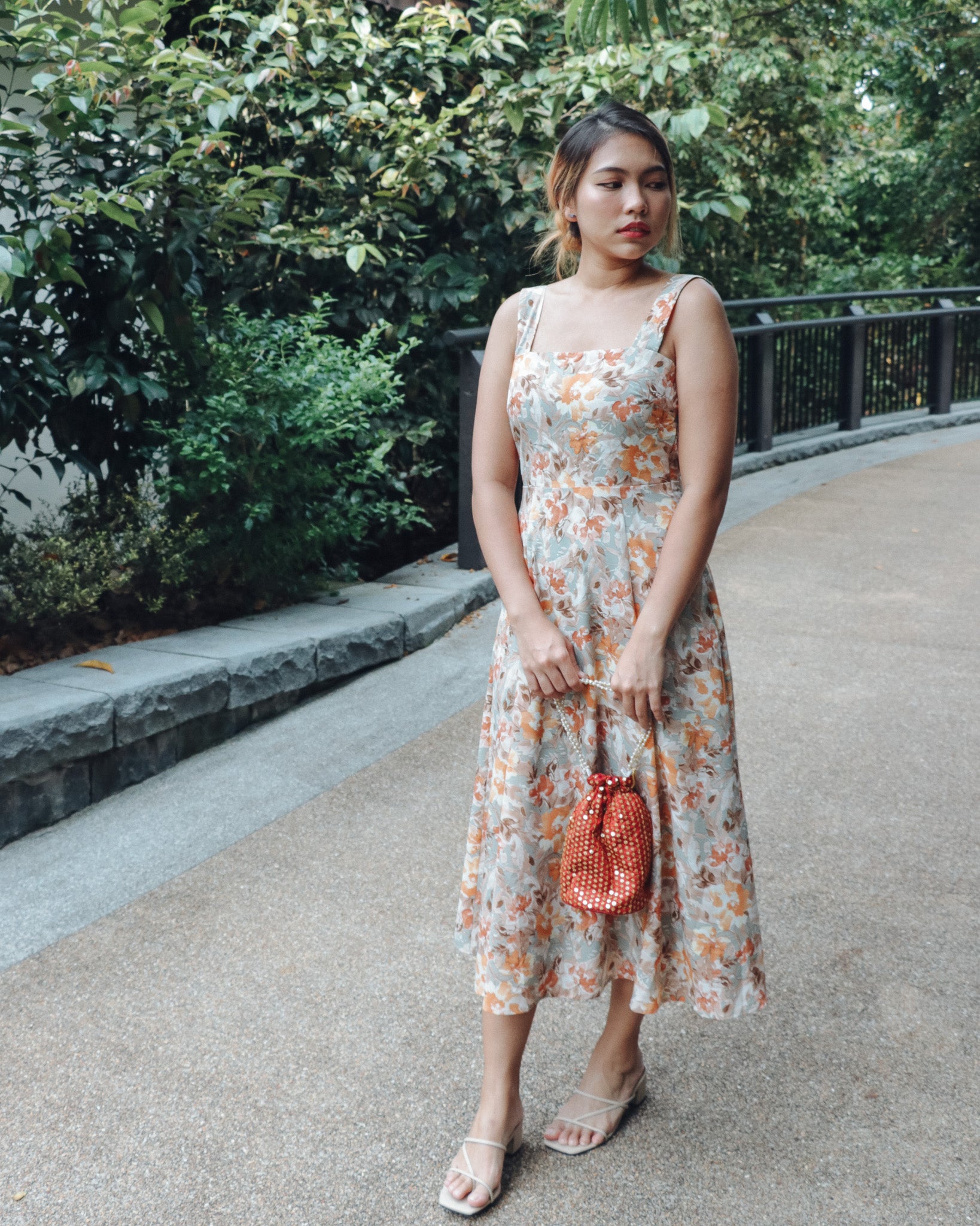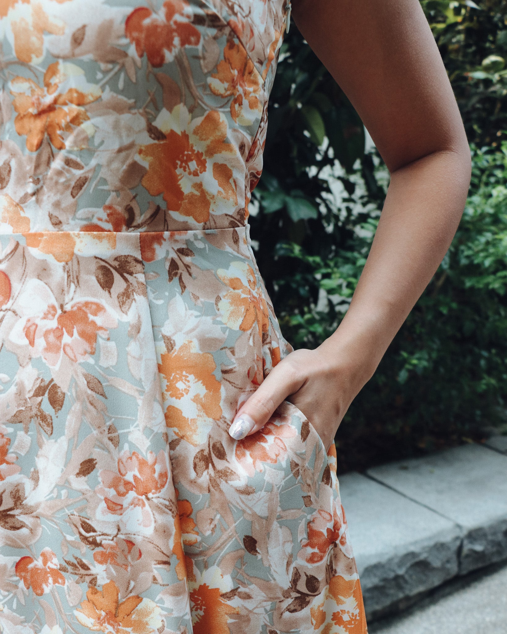 Colour: Light Green with Orange Florals