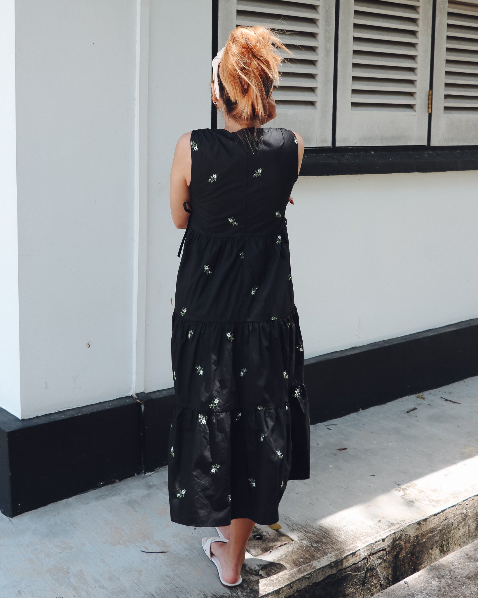 Size M measures 17" PTP, 16.5" waist, 24" hips, 45.5" down.
